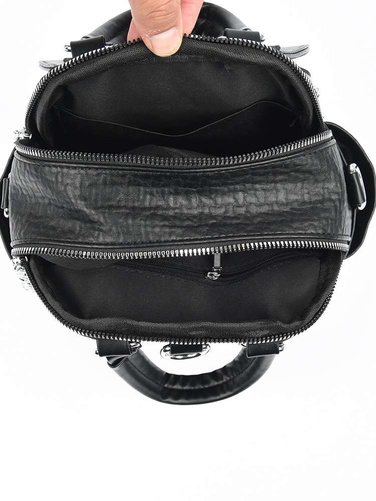 The handbag is made from premium-quality faux leather in a deep black shade, offering both durability and sophistication. The smooth yet sturdy texture ensures it holds its shape while adding a luxurious feel to your look. Complementing the elegant material is a unique metallic clasp at the bottom, designed with geometric patterns that enhance the overall aesthetic appeal of the bag. The combination of bold tradition with modern design details makes this handbag versatile enough for a wide range of occasions.