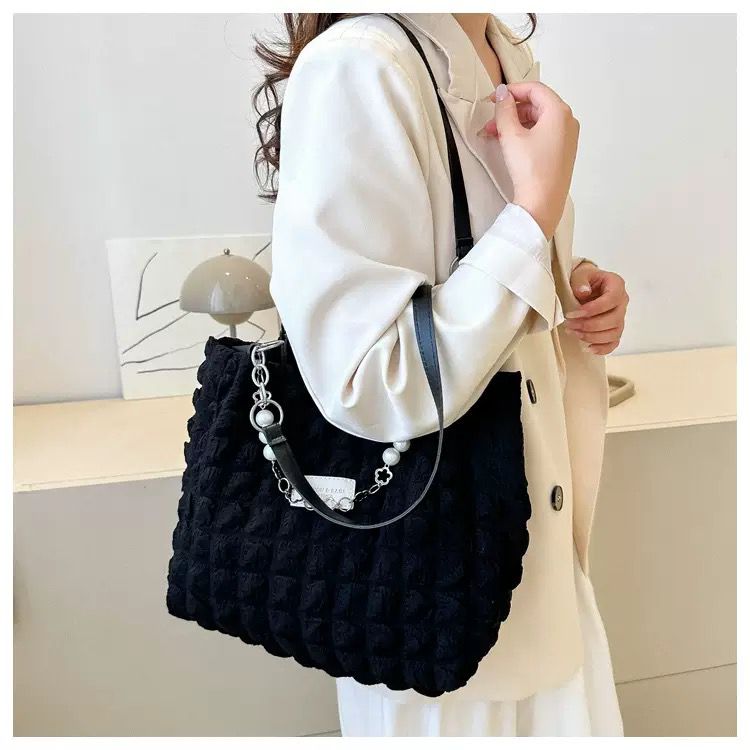 Designed for women who appreciate both fashion and function, this tote is not just a bag – it’s an expression of personality. Its unique waffle-textured velvet pattern stands out in a crowd of regular bags, giving it a bold yet graceful identity. The high-quality craftsmanship ensures long-lasting use, while the trendy design makes it a perfect choice for fashion-forward women.